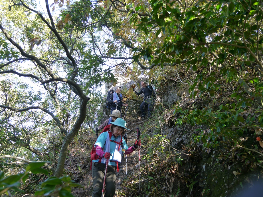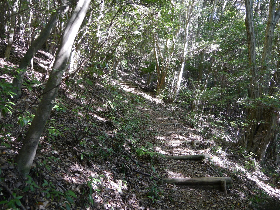 ここから日岡山まで約2時間で往復して登山口に戻る予定であったが、山頂を含め開けておらず眺望の期待がないようなので、結局ここから岩を経由する山道があるようなので、それを使って戻ることにした。