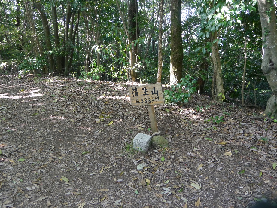 ○ 09:36 「蒲生山」の標識が突然現れた。”え、ここが山頂!”全く眺望がないところである。またTV展望所とは?、結局わからずじまいだった。