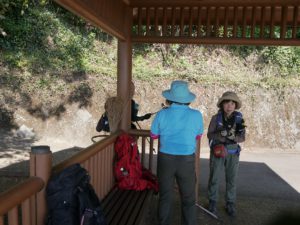 ○ 11:10登山口に到着した。東屋で昼食を摂って、本日の山の会を無事終えた。